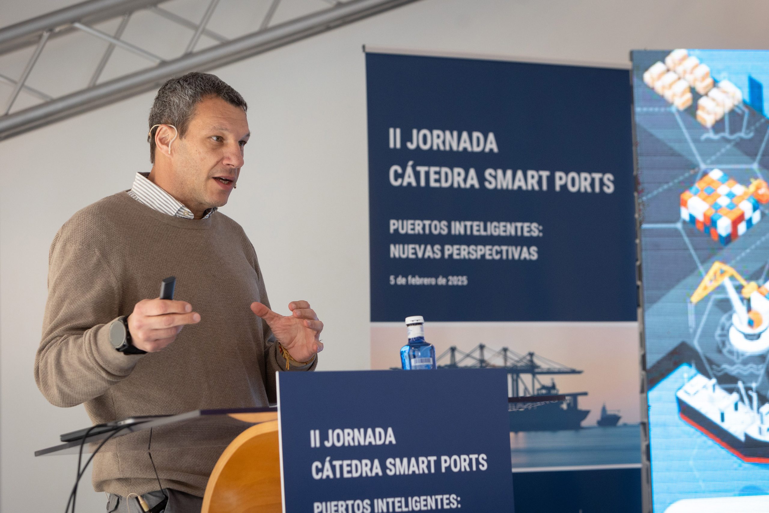 Daniel San Miguel, responsable del área de ciberseguridad en redes y servicios 5G de GMV, durante su intervención en la II Jornada Cátedra Smart Ports.